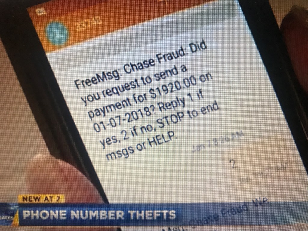 In Carrie’s case, she was able to get service restored to her phone and received a fraud alert from Chase bank about the attempted transfer of $1920.